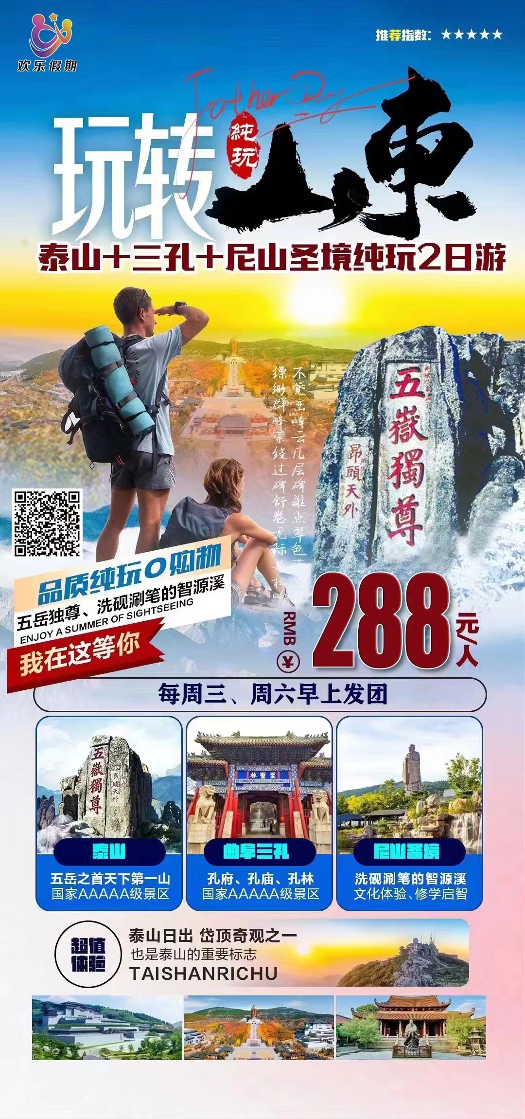 山东--【玩转山东】泰山+三孔+尼山圣境纯玩2日游