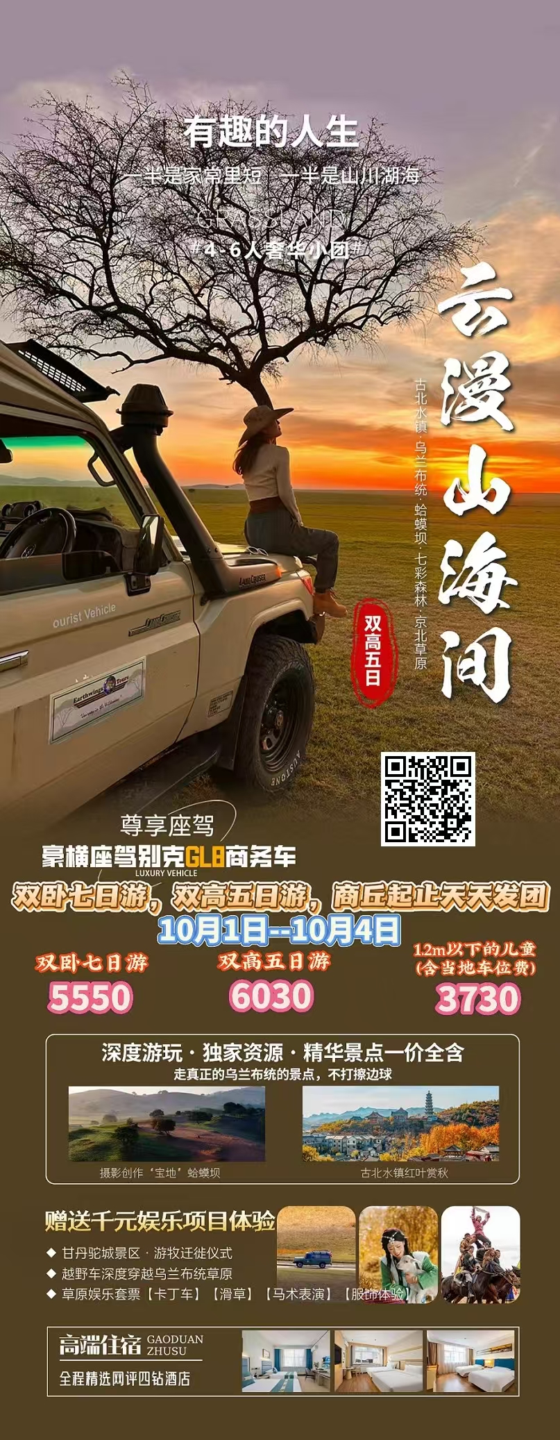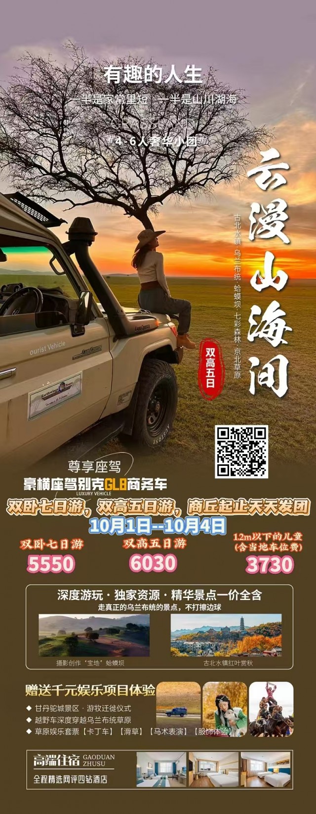北京--【云漫山海间】云漫山野间:古北水镇、坝上草原、草原娱乐、蛤蟆坝、草原专属越野车、甘丹驼城景区、游牧勒勒车、探访游牧迁徙部落、神仙谷.七彩森林公园、大汗行