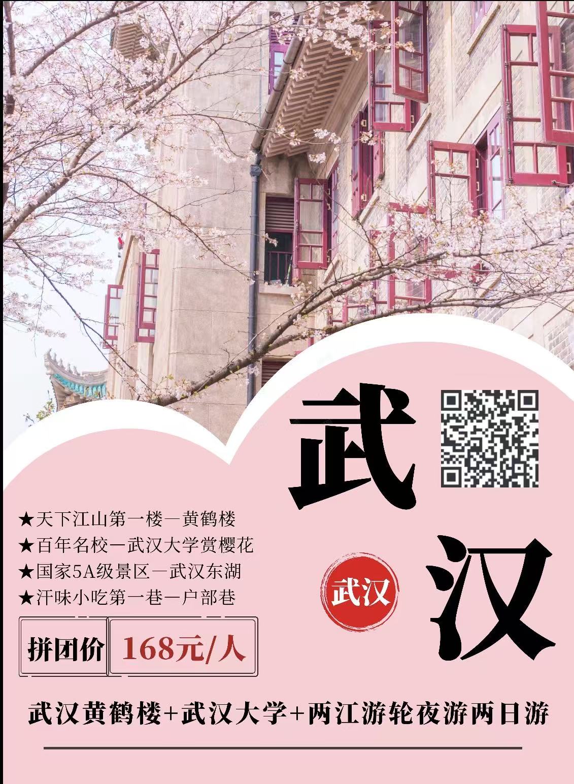 湖北--【春秋只“樱”为你】武汉黄鹤楼+武汉大学+两江游轮夜游两日游