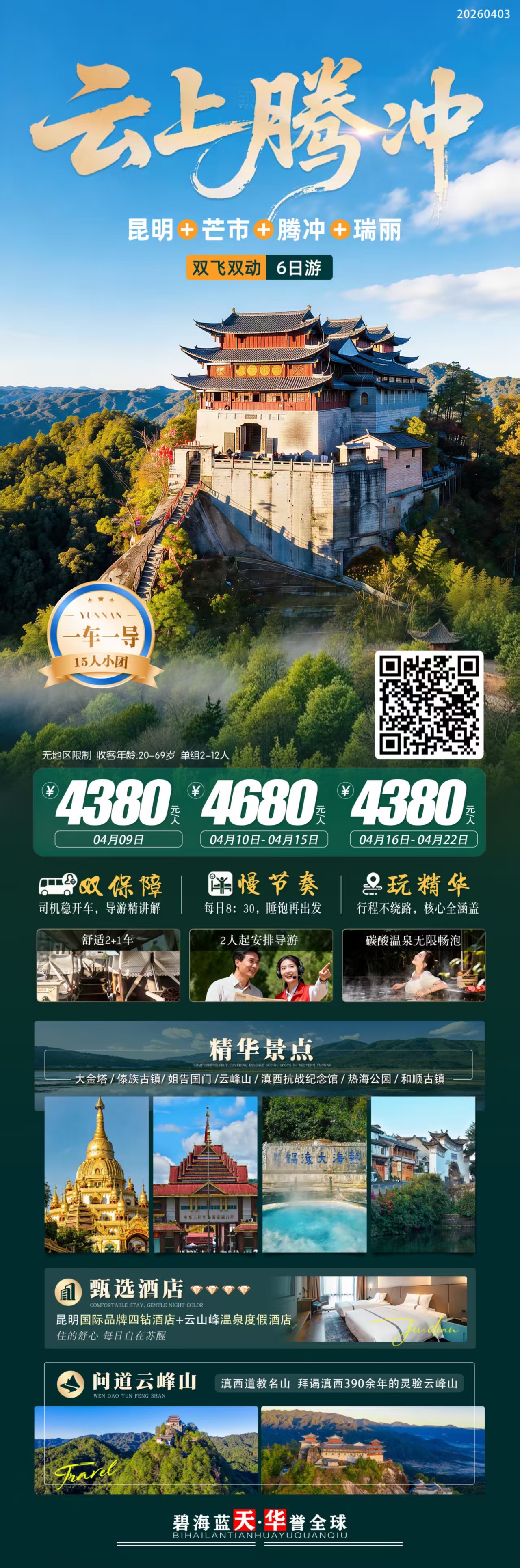 云南--【云上腾冲】昆明丨芒市丨腾冲丨瑞丽-6日游