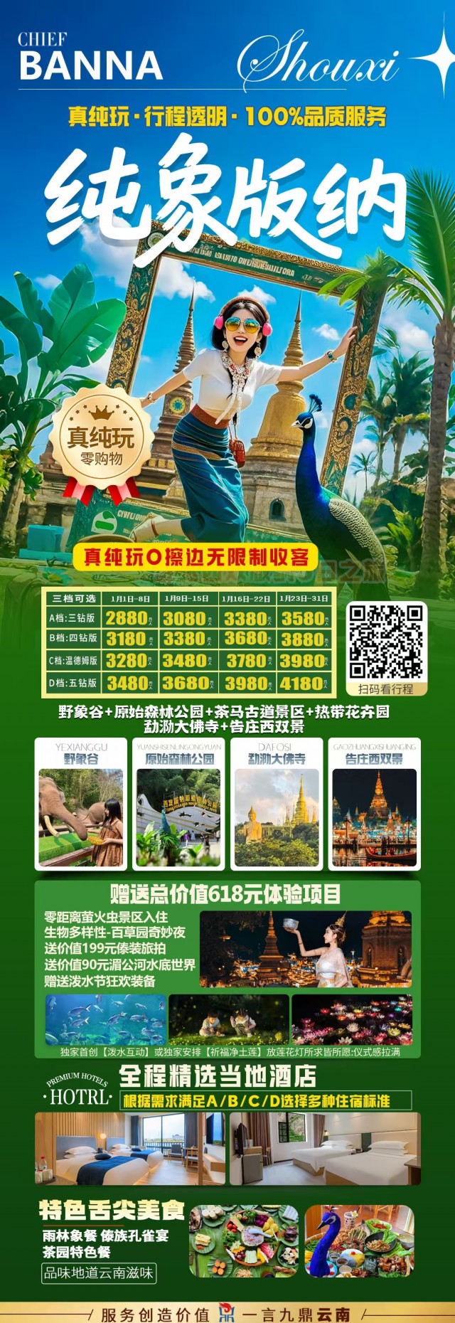 云南--【纯象版纳】西双版纳双飞五日游