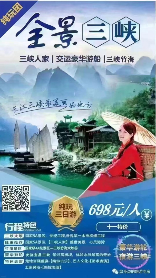 湖北--三峡人家(豪华游轮)+船过葛洲坝+三峡大坝+三峡竹海大瀑布纯玩三日游