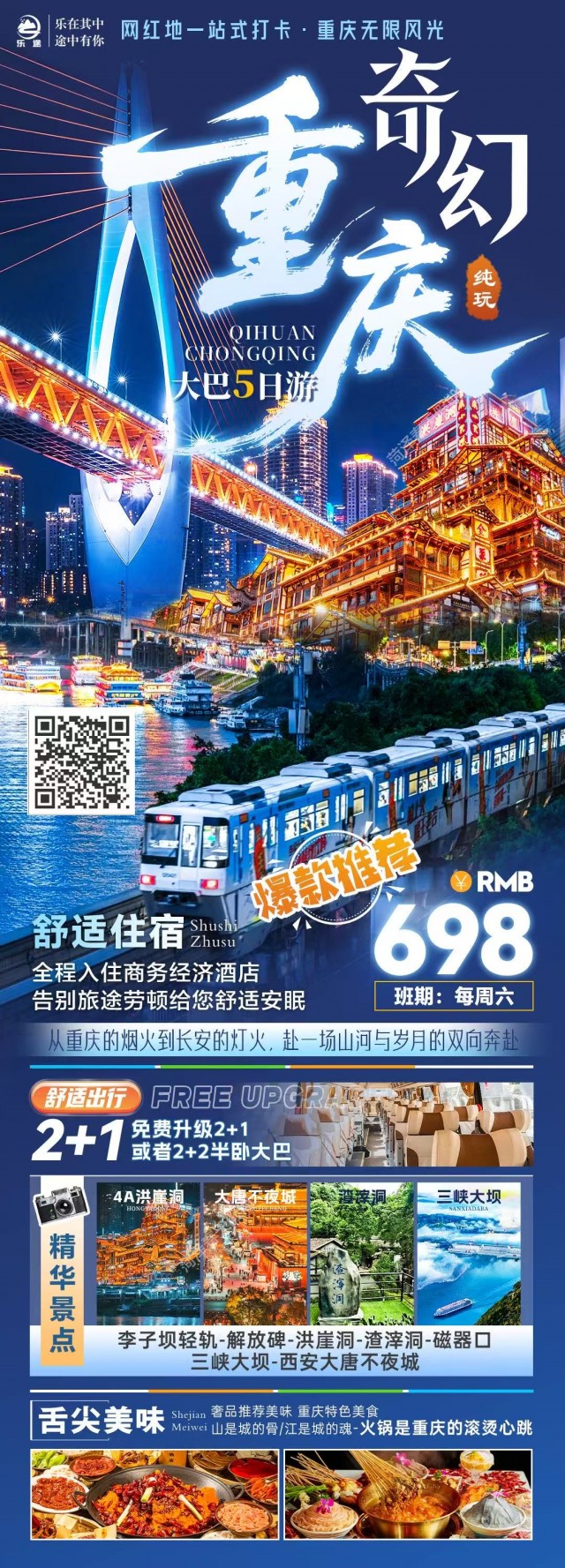 湖北--【奇幻重庆】重庆-洪崖洞-白公馆-渣滓洞李子坝轻轨+三峡大坝+西安大唐不夜城纯玩五日游