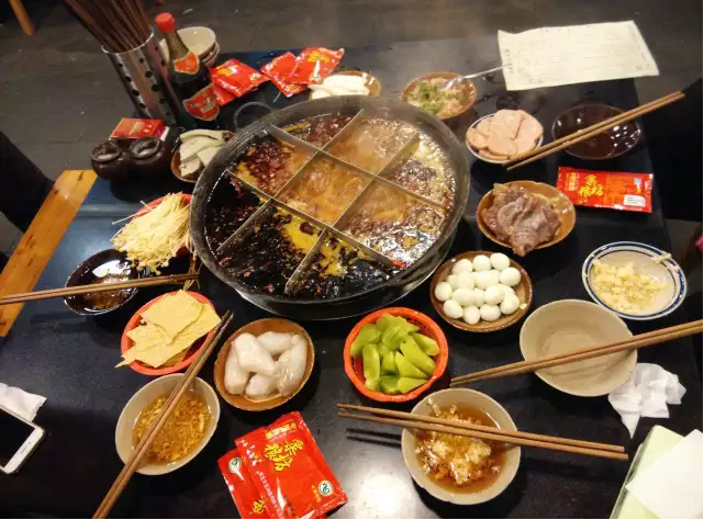 小老点儿火锅就在酒店出门马路对面,步行2-3m,作为重庆火锅的首站还是很不错的。可以依个人口味选择鸳鸯货或是九宫格。毛肚,黄喉,鸭肠,牛肝,鹅肠,鲜鸭血,莴笋,莲菜。。。鲜鸭血必点哦!配上香油蒜泥,来一点重庆啤酒,三五好友吃起吧!
