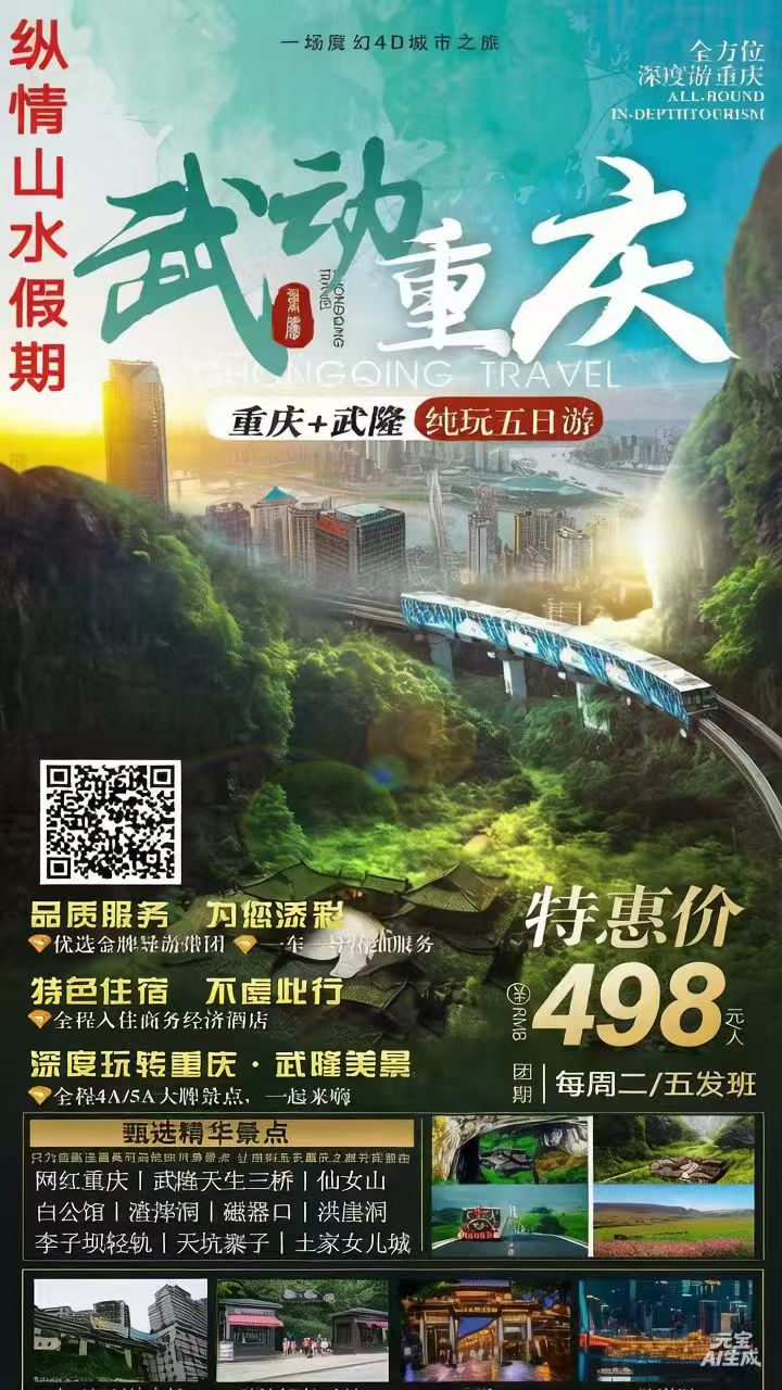 重庆--【武动重庆】重庆+武隆双汽5日游