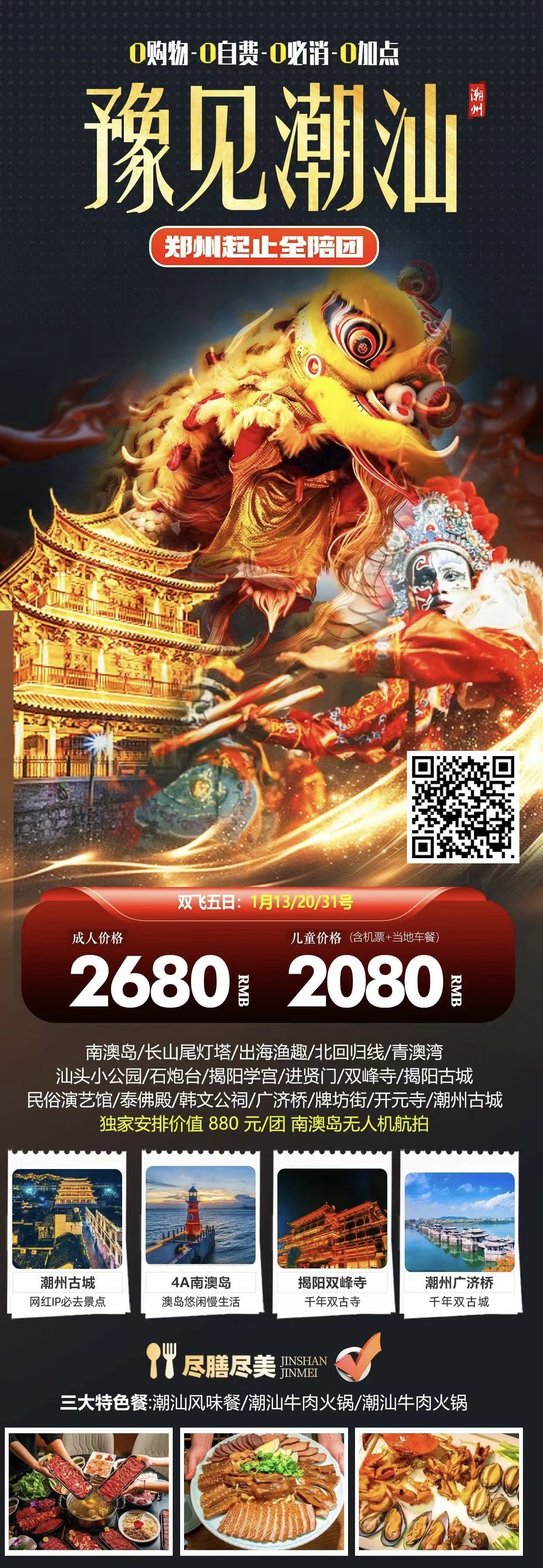 广东--豫见潮汕/郑州起止全陪团/双飞五日游