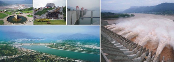 三峡大坝全貌、坛子岭俯瞰、三峡大坝泄洪的壮观景象