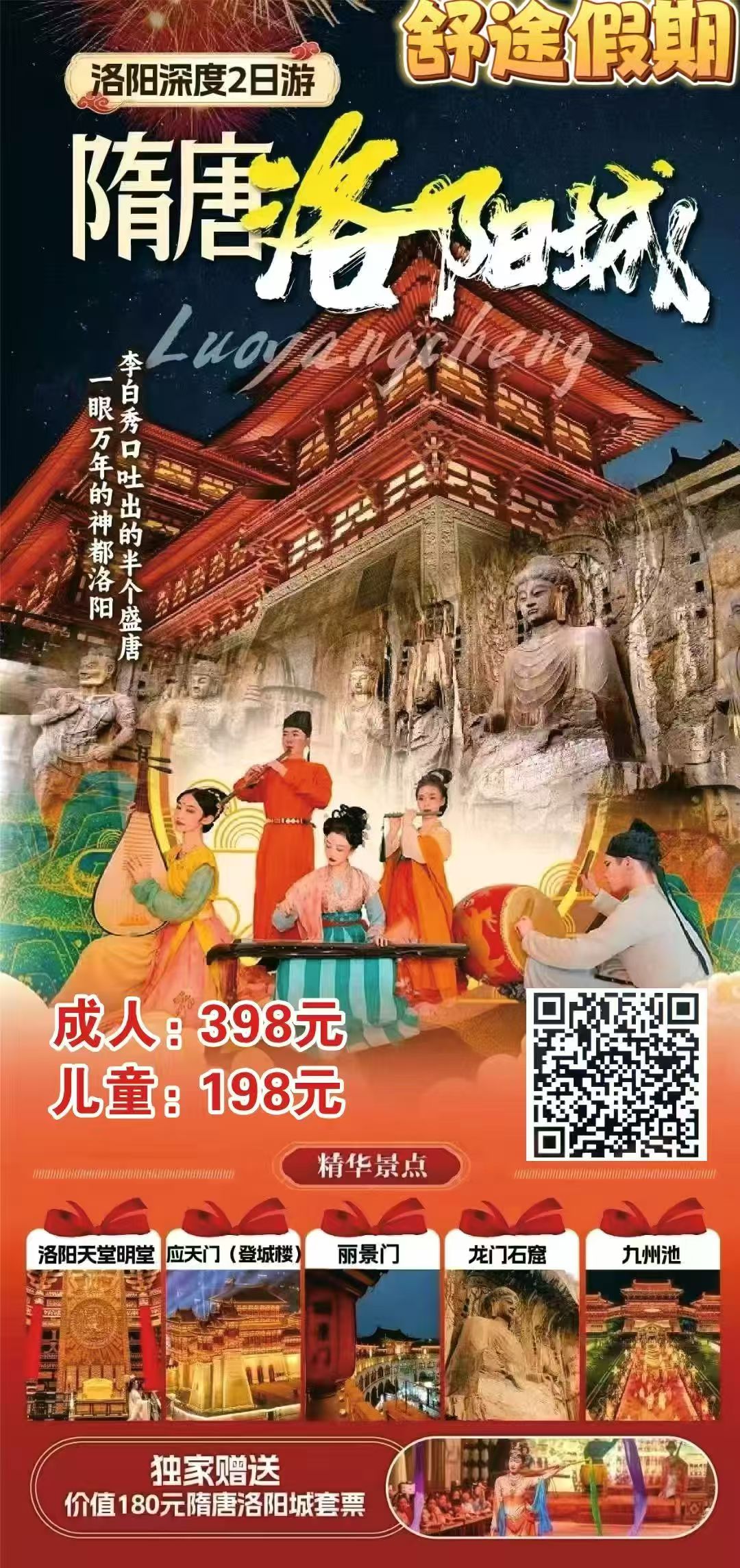 河南--洛阳丨隋唐洛阳城(天堂明堂/应天门/九州池)龙门石窟、洛邑古城