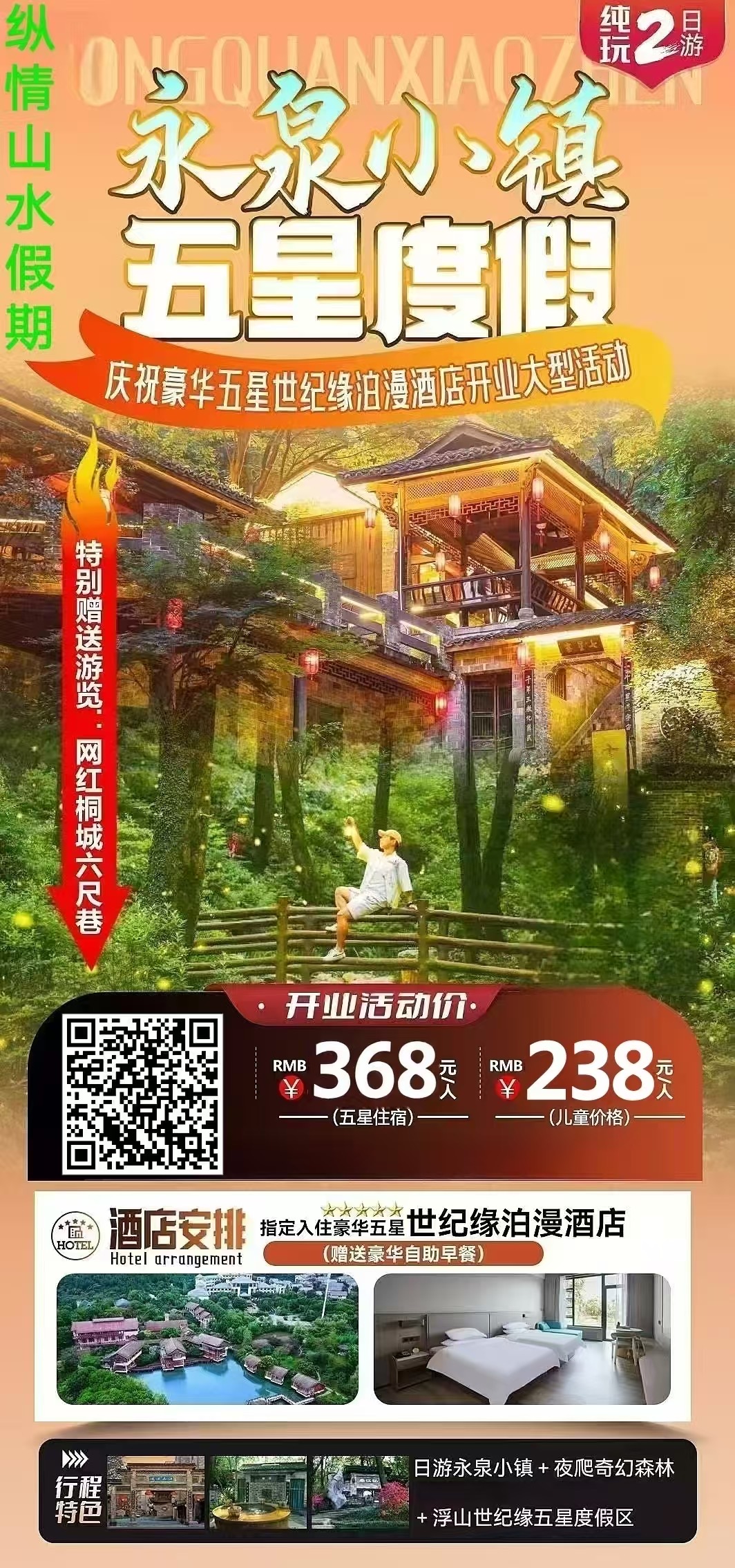 安徽--【五星纯玩】特价368元!永泉小镇+浮山纯玩2日游