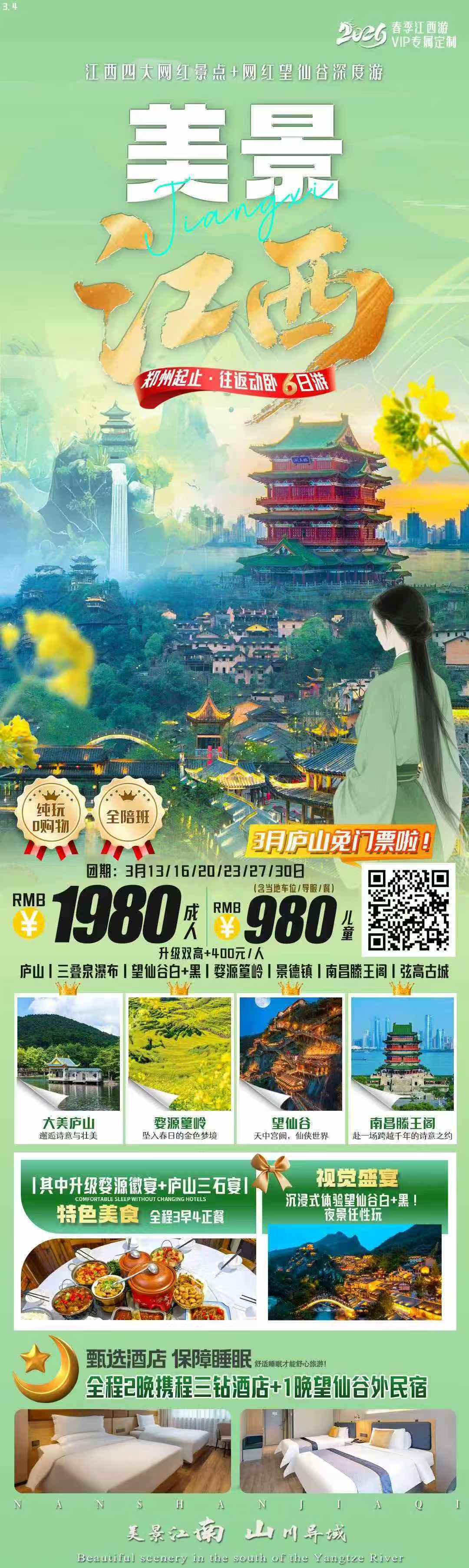 江西--【美景江西】婺源篁岭/庐山/景德镇/南昌滕王阁/望仙谷/弦高古城 双卧6日游
