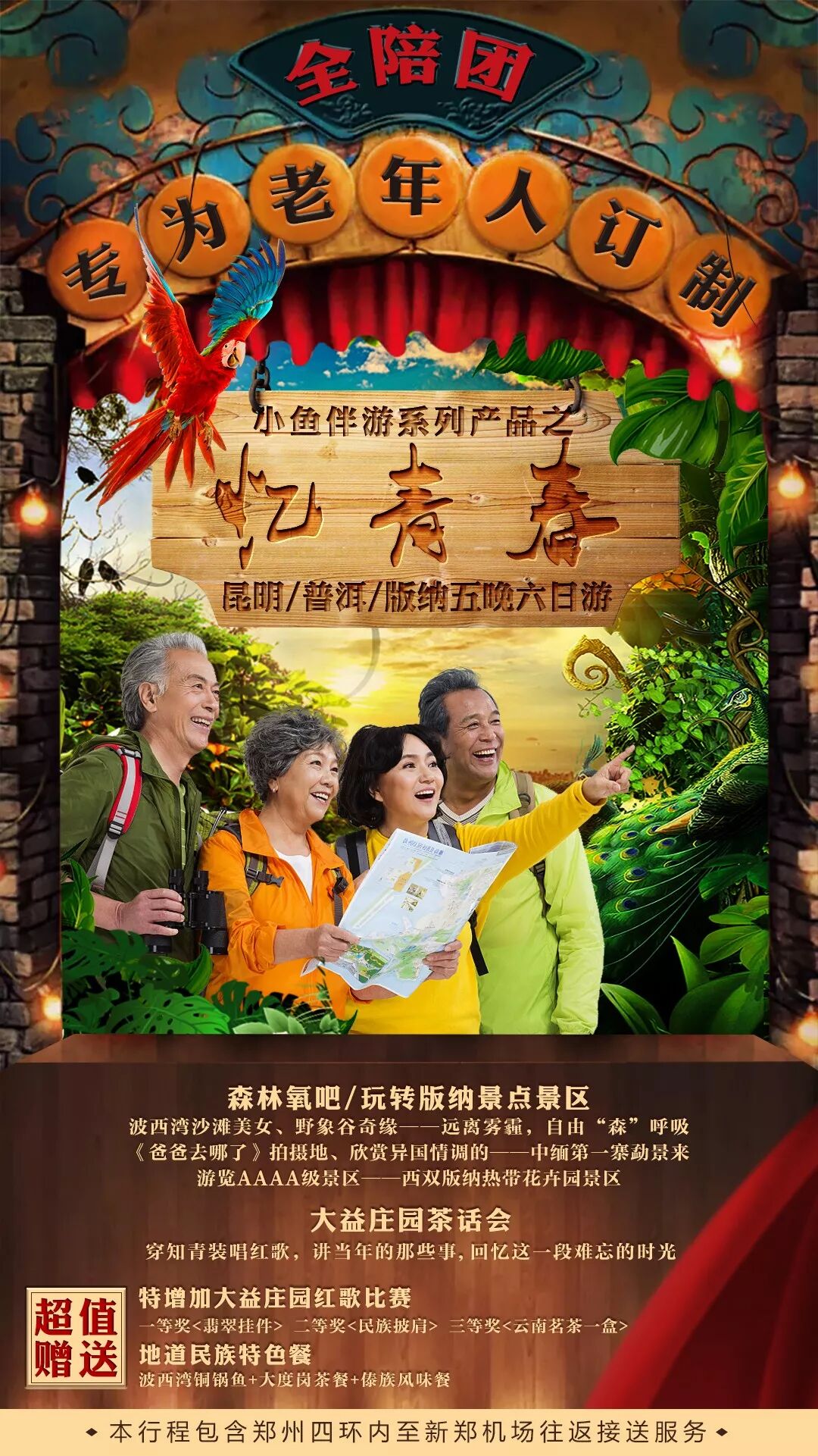 3. 交通:郑州-昆明往返大交通有火车、飞机,高铁硬卧,根据个人选定行程为准,成人持有效期内身份证,请12周岁以上客人带好有效身份证原件。12周岁以下的,必须带身份证或者户口页原件。(不带有效证件以及未能在规定时间内到达造成无法登火车造成的损失由客人自行负责)。机票价格为团队机票,不得改签、换人、退票;