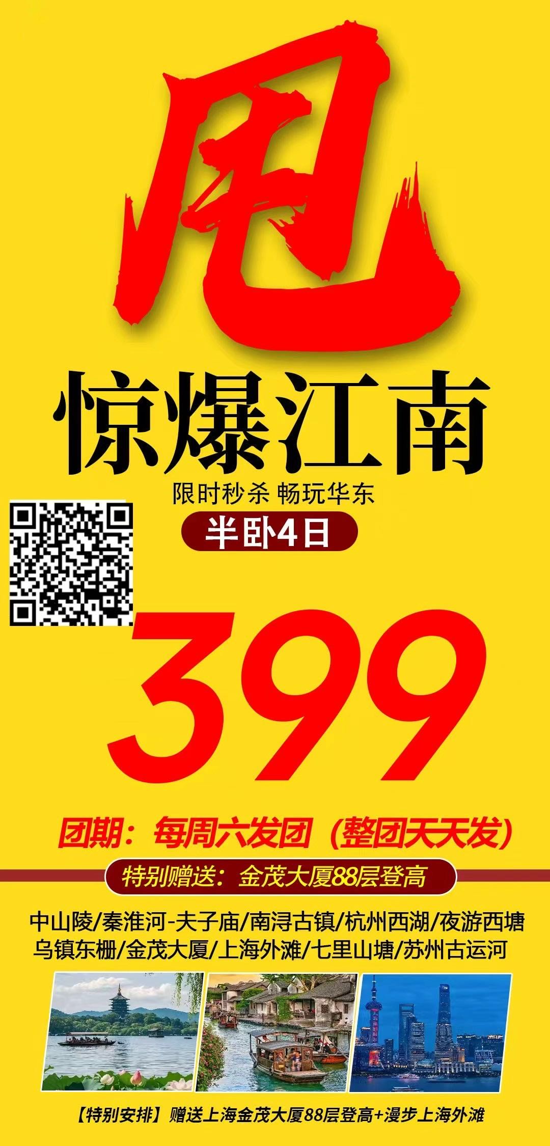 上海--【惊爆江南】秦淮河夫子庙+中山陵+南浔+夜游西塘+乌镇东栅4日游(赠上海金茂大厦88层登高)
