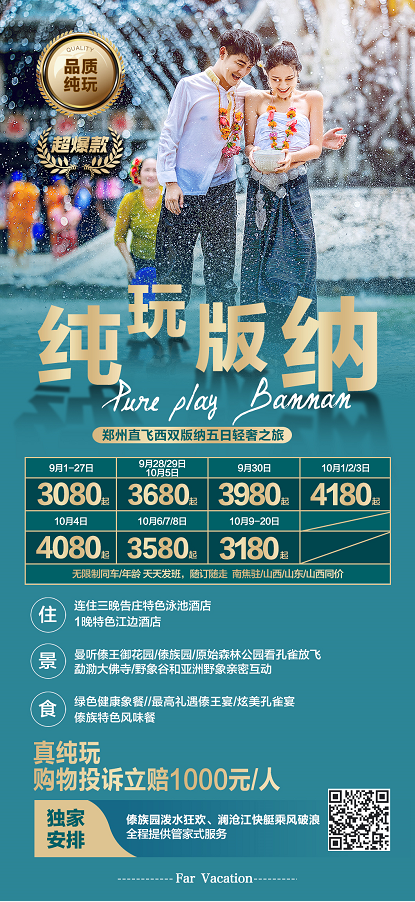 云南--纯玩版纳-郑州直飞西双版纳双飞5日游