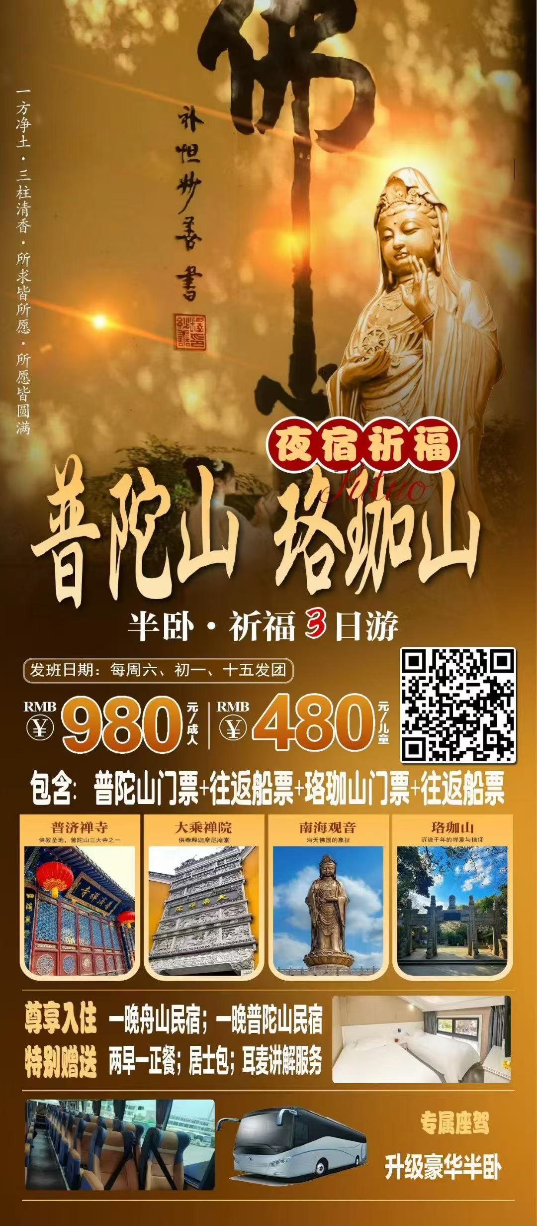 浙江--【越来越好】普陀山+珞珈山汽车三日游